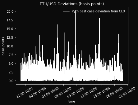 10/7 8:00 PM - 10/9 9:00 PM. During this subperiod, Pyth best case avg. deviation is $0.16 (1.2 bps).